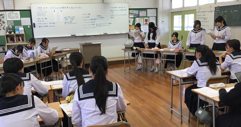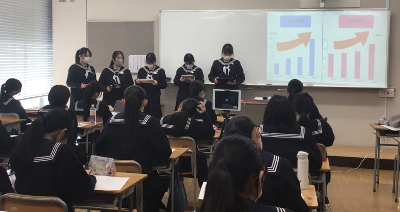 平和・人権学習や国際理解教育を通して、社会や世界への視野を広げます。英語暗唱大会やスピーチコンテスト、留学準備の英語プレゼンを通じ、世界とつながる力を育成します。