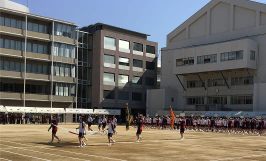本校では、体育祭や文化祭など、多くの学校行事で、生徒たちが自ら企画・運営に携わっています。そして全校生徒の声を聞き、想いを形にしていくのが生徒会の役割です。週番活動や地域の清掃などでも活動の中心を担い、活躍の場は多岐に渡ります。