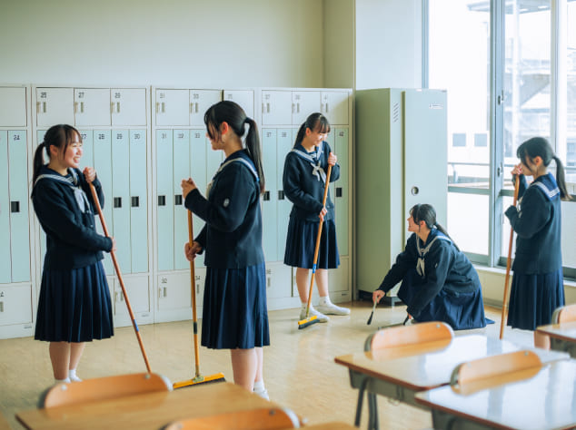 本校では、体育祭や文化祭など、多くの学校行事で、生徒たちが自ら企画・運営に携わっています。そして全校生徒の声を聞き、想いを形にしていくのが生徒会の役割です。週番活動や地域の清掃などでも活動の中心を担い、活躍の場は多岐に渡ります。